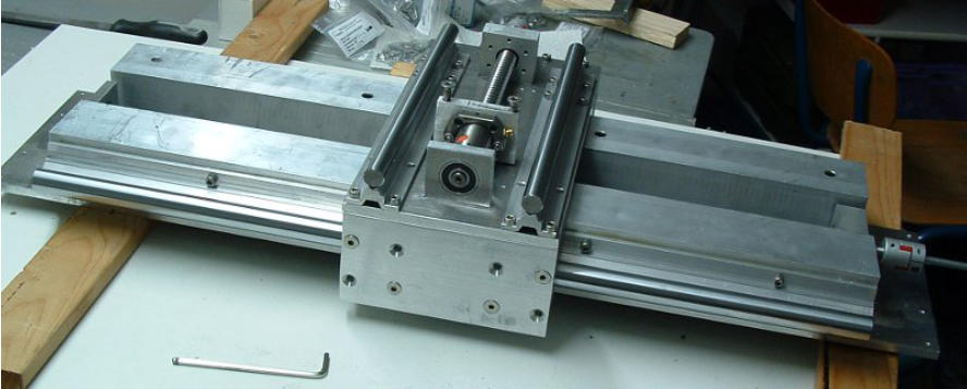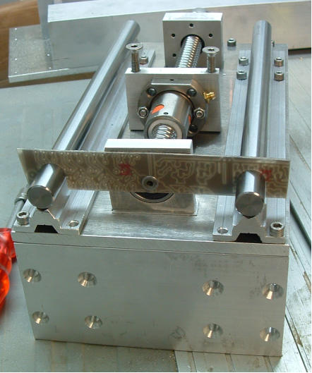 Als erstes wurde die Z-Achse angefertigt. Dabei gab es Probleme mit der Genauigkeit. Die Linearführungen und die Kugelumlaufspindel müssen absolut parallel montiert sein. Das war zunächst nicht der Fall. Nach einer Montage klemmte deshalb der Vorschub. Jene Teile, die komplett auf der Isel-CNC angefertigt sind genau genug. Leider ist meine Isel-CNC zu klein für die meisten Teile, der Rest mußte von Hand gemacht werden. Und das ist leider nie so genau wie nötig.Dann habe ich aus den 3D-Zeichnungen Schablonen generiert und (aus Platinen-Reste) auf der Isel-CNC angefertigt. Damit wurden die Führungen und die Welle eingestellt und es funktionierte sofort einwandfrei.