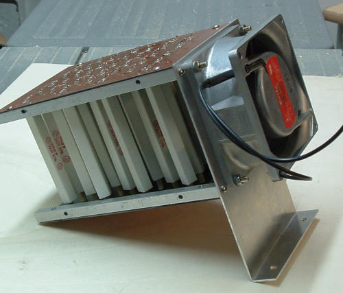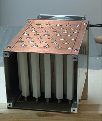 Watt in Wärme umsetzen. Diese Aufgabe übernimmt mein “Kühlturm”. Mehrere 17W-Widerstände sind so parallel geschaltet, das die