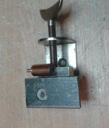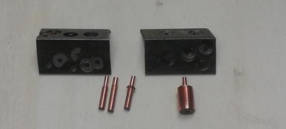 Der Bohrer ist ein Kupferstab mit 4mm Durchmesser. Dessen Stirnfläche wurde auf der Drehbank plan gedreht.