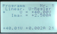 In der 2.Zeile Steht der Betriebsarten-Text “Linear”. Daneben wird der Regler (Spannungs- oder