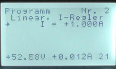 In der 4.Zeile wird nur beim U-Regler die Strombegrenzung angezeigt. Die Strombegrenzung ist nur beim U-Regler erforderlich und wirkt