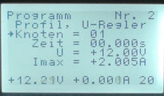 In der 3.Zeile wird je nach Reglerart die Spannung oder der Strom angezeigt. Diese Einstellungen werden in 16bit-Auflösung ausgegeben.