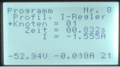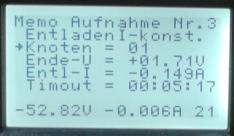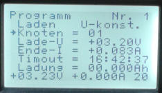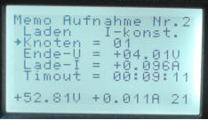 Wenn Memo aktiv ist, sind in der 7.Zeile beim Vorgang “Laden U-Konst.” der maximale Ladestrom einzustellen. Wenn Memo nicht aktiv