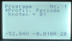 Mit den Programmschalter können gespeicherte acht Datensätze ins LCD geholt werden. Die Werte