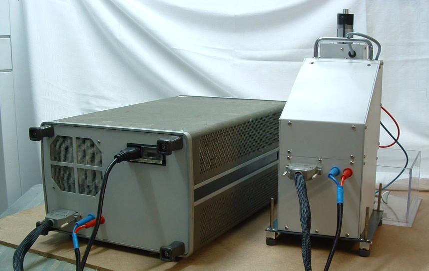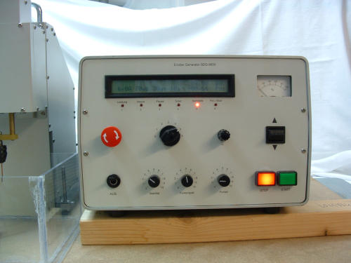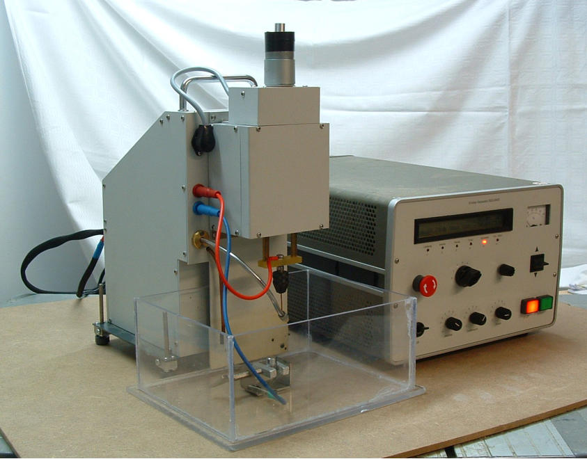 Die Anlage besteht aus 3 Teilen: der Maschine, den Generator und den Behälter fürs Dielektrikum. Der Behälter ist nicht wie üblich mit