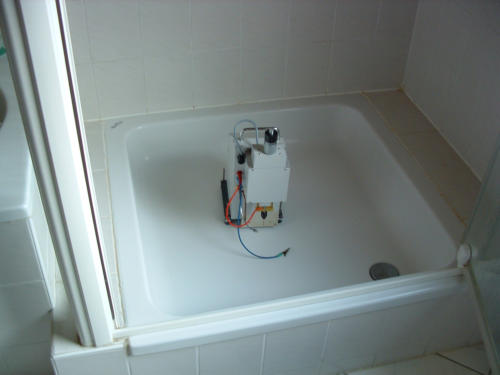 der Maschine in der Duschwanne.