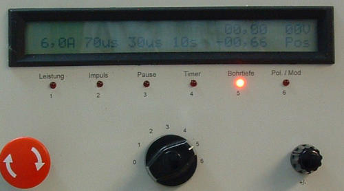Nach START beginnt die Erodierung. Wenn die