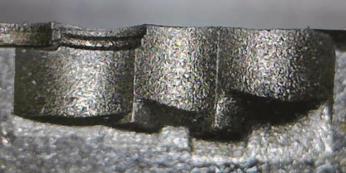 In den Winkel wurde am Rand hinein erodiert. Hier im Foto ist der Winkel um 90°