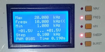 Wobbler und Impulskette nenne ich hier Sweep und Burst weil das weniger Buchstaben hat und deshalb besser auf die Frontplatte passt.