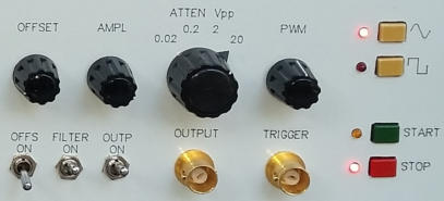Es handelt sich also um einen normalen Wobbler. Als Besonderheit gibt es einen Trigger-Ausgang und eine Start- und Stop-Taste.