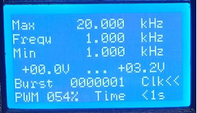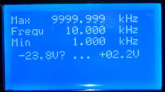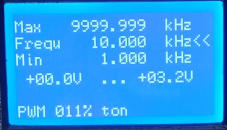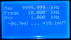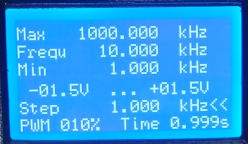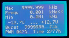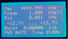 Eingaben ist das mit allen drei Bedienelementen möglich. Von 1 Hz bis 9999,999kHz.