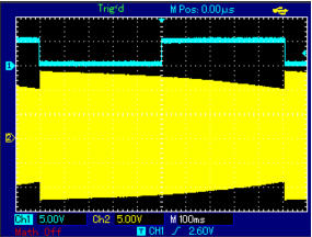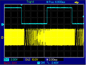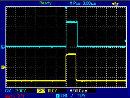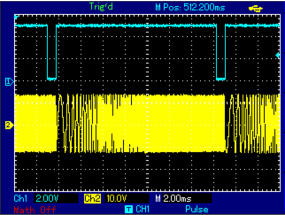 Im Start-Zyklus erscheint ein H-Pegel an der Trigger-Buchse. Wird in den Oszilloskop-Bildern blau angezeigt. Das hat eigentlich nur eine