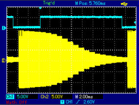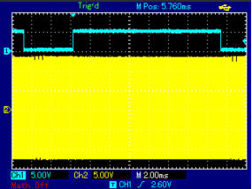 Die gelbe kurve zeigt die 5V für den Prozessor.