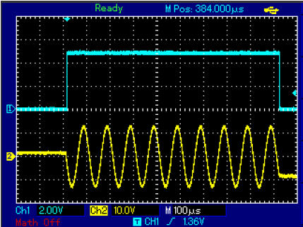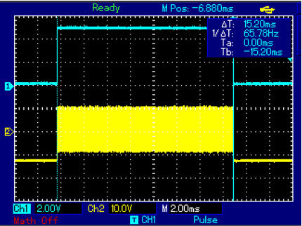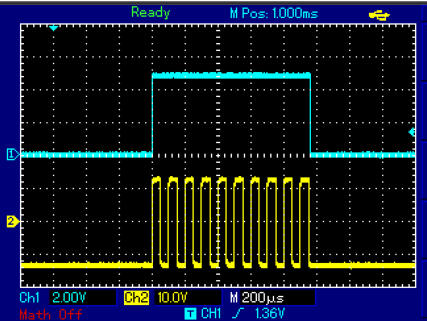 Kontrollfunktion. Wenn diese Zeit zu lang ist, wurde eine zu hohe Frequenz gewählt. Dann werden ein paar Impuls nicht oder einer zu víel