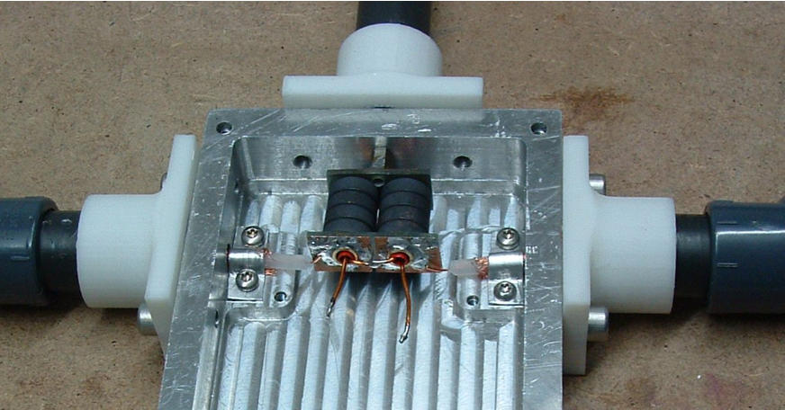 Die Innenleiter des RG59 gehen links und rechts an ein HF-Eingangstrafo 1:2 mit