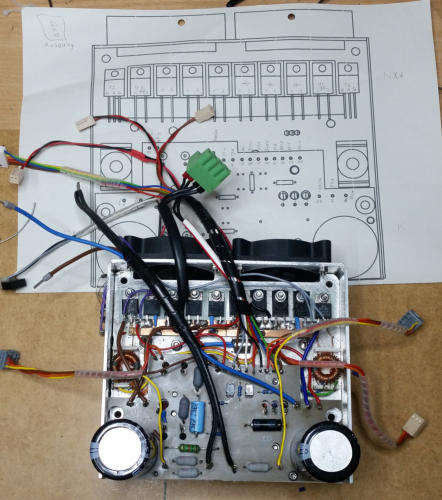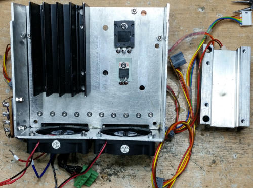 isoliert montiert. Die Transistoren sind oben, die Gleichrichter