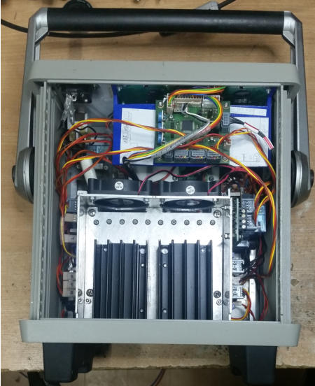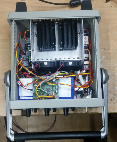Es war nicht einfach, die Teile ins Gehäuse einzuplanen. Der Aufbau besteht aus 3 Gruppen: Hauptteil, Frontplatte und Leistungsteil.
