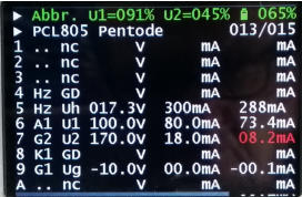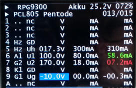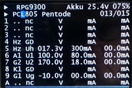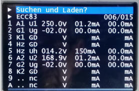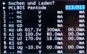 Röhre wählen: durch Röhrentyp (Texteingabe) und Enter wird die Röhre im FRAM gesucht und falls vorhanden in den Arbeitsspeicher kopiert.