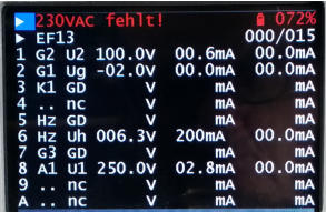Die Messung der Gitterströme muss unipolar erfolgen. Der Messbereich geht von +12mA bis -12mA. Der Nullpunkt muss sowohl in der