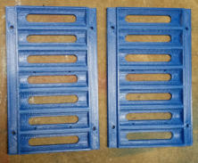Auf das obere Deckblech und aufs Bodenblech sind blaue Teile