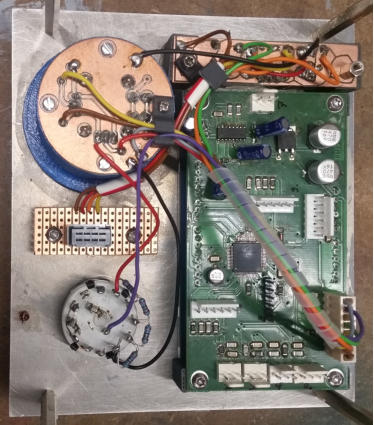 Der Joystick´besteht aus zwei im 90°-Winkel angeordnete Potis (ALPS3318). Die werden mit einen Hebel bedient, der nach loslassen in die