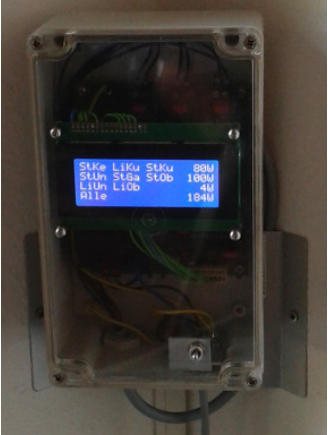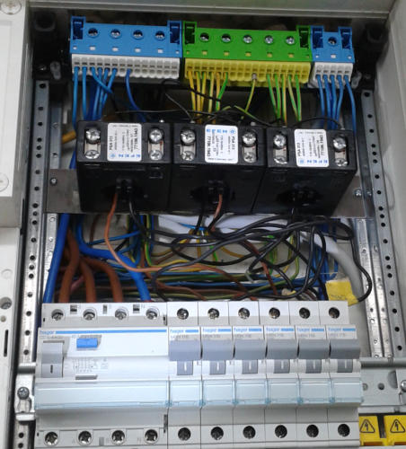 Die 3 Stromtrafos sind in der Zählertafel im Keller montiert, die Anzeige ist oben im Büro.