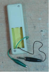 KrokoKlemme und Laborstecker passen ins Batteriefach.