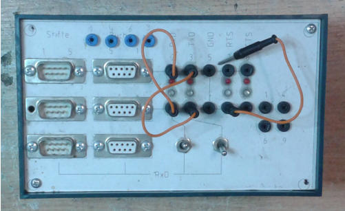 Leitungen (RxD, TxD, RTS, CTS) auf 2mm-Buchsen.