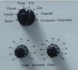 Kreissäge, darauf die blaue Erodiermaschine V2