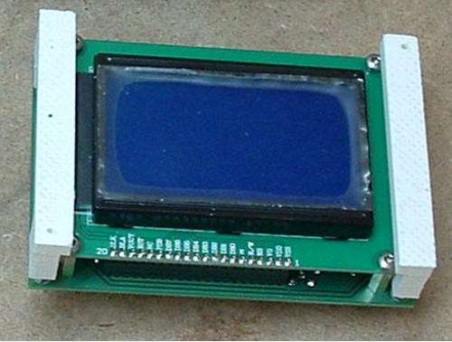 Hier ist ein LCD-Modul mit CPU-Print auf ein Regal montiert