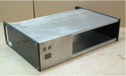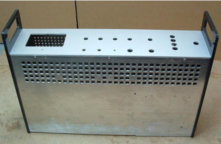 Das noch leere Gehäuse. Die schwarzen Seitenteile sind aus