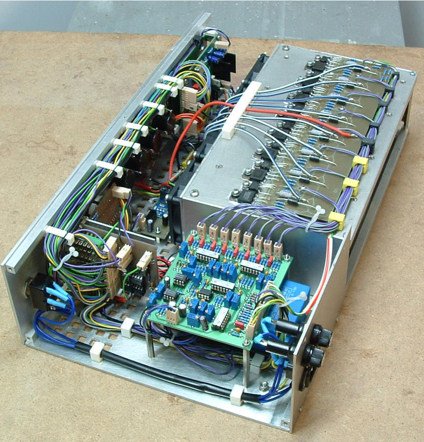 Abweichungen von eingestellten Sollstrom zum Istwert sind wegen der rein analogen Regelung und wegen der 8 unabhängigen Endstufen