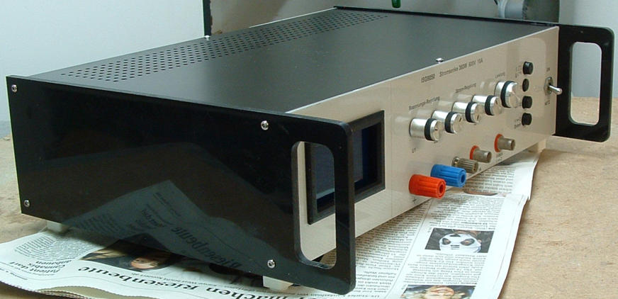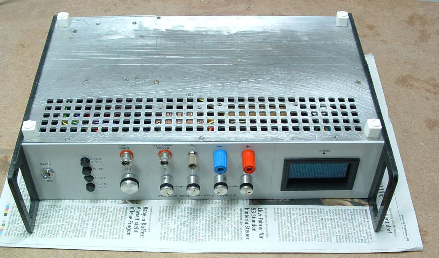 Labornetzgerät #2 auf 50V eingestellt, mit Elko gepuffert, wird von Hand mit einen Taster dazugeschaltet.
