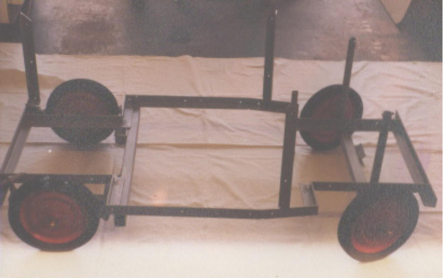 Hinterräder drehbar angebracht. Am äußeren Ende der Querträger ist