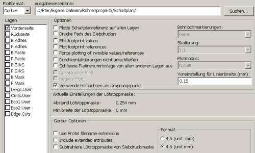 Dann Plotten: Gerber, F.Cu, Verwende Hilfsachse als...