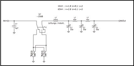 Die Tiefpässe sind nur mit fertig beschaffbaren Spulen und Kondensatoren bestückt. Die etwas krummen Werte der Bandbreiten waren