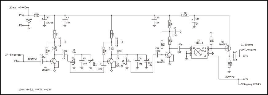 Die ZF von 300MHz wird in drei Stufen verstärkt und dem Direktmischer SBL-1 zugeführt. Die Stufen bestehen aus Transistoren vom Typ