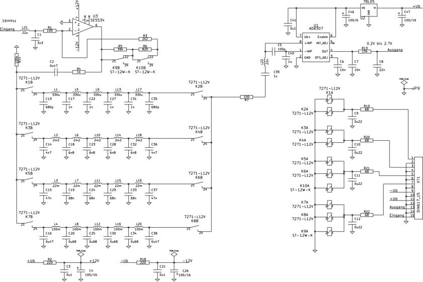 Die Tiefpässe sind mit für eine Impedanz von 1kOhm ausgelegt. Die RCL-Kombinationen am Eingang des AD8307 vernichten restliche HF-