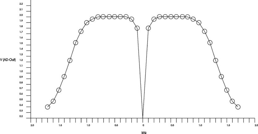 Nullstelle. Die Frequenz unter 250Hz mußte abgesenkt werden weil sonst der AD8307 für diese Frequenzen einen zu hohen Spitzenwert