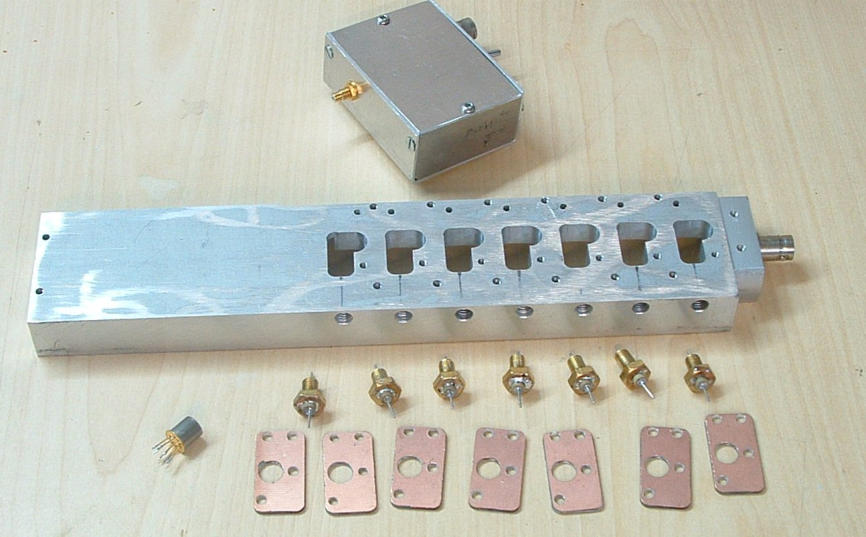 eine aus Messing. Die untere Messingplatte ist mit SMC-Buchsen für die HF und ein paar eingelöteten Dukos für die Betriebsspannung und