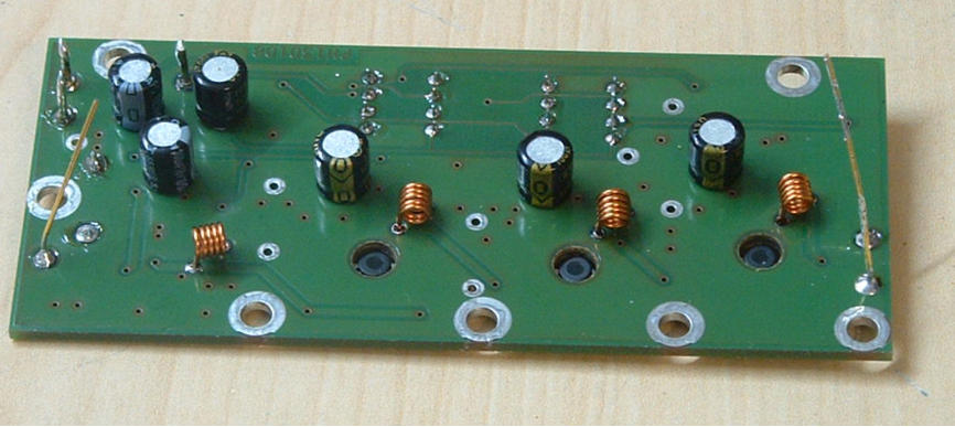 Die NF-Filter Baugruppe ist auf einer steckbaren Platine. Die steht ebenfalls senkrecht auf der 3mm Aluplatte. Darüber ist eine