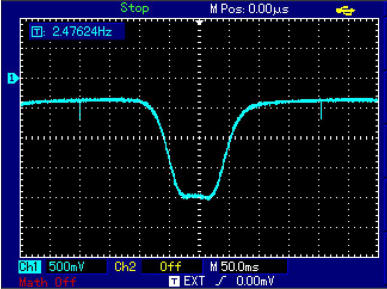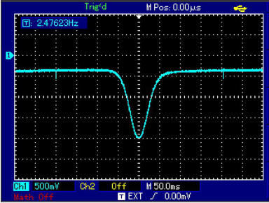 Mein Gerät hat einen Triggerausgang für einen Oszilloskop. Genau in der Frequenzmitte wird ein positiver Impuls ausgegeben.