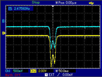 Dieser wird mit den Eingang “externe Triggerung” des Digiskops verbunden. Den Triggerpunkt muß man am Digiskop in Bildmitte