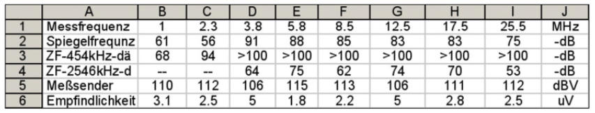 Die dritte Zeile enthält die Dämpfung des 454kHz-ZF-Empfanges
