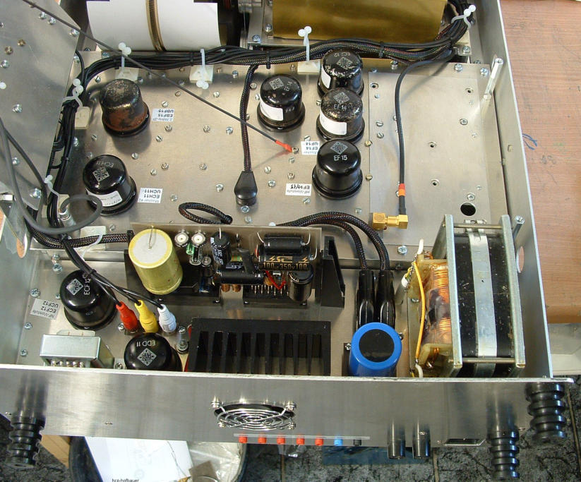 Blick von oben ins Gerät, Abschirmblech entfernt