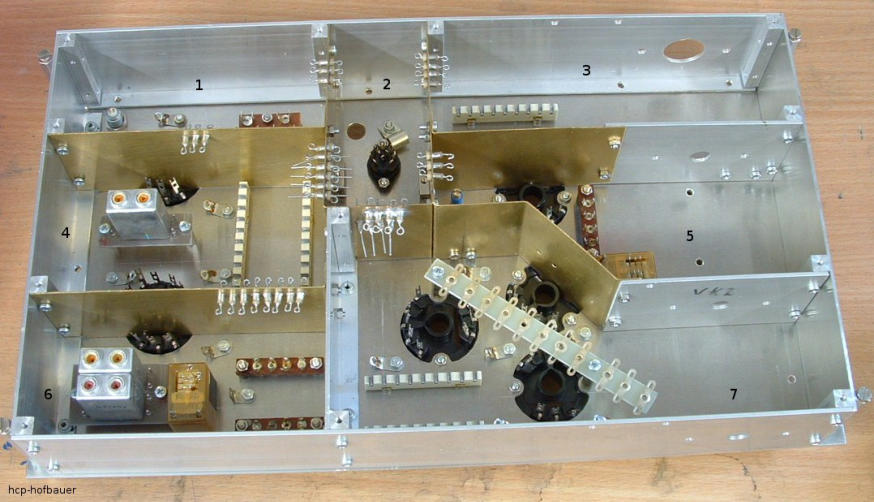 verbunden. Ein Zerlegen des Empfängers zwecks Servicearbeiten in seine 5 Baugruppen ist in wenigen Minuten ohne Lötarbeiten möglich.