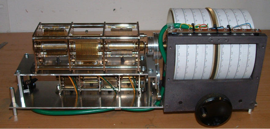 Auf der rechten Seite ist der Platz für die 3 Trommeln und der 6mm-Welle zur Umschaltung der 8 Wellenbereiche.